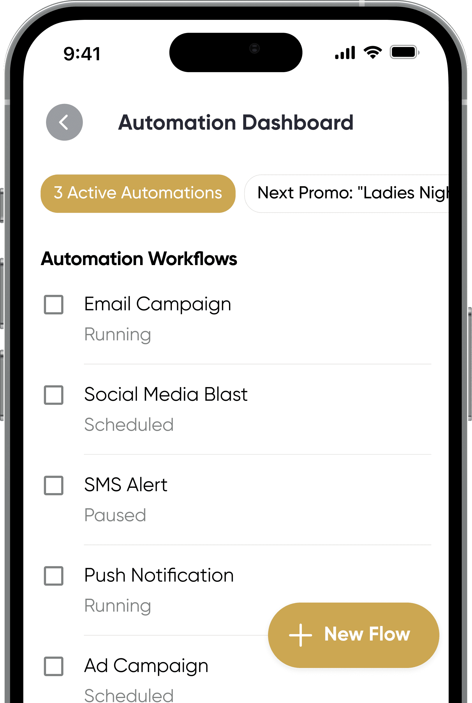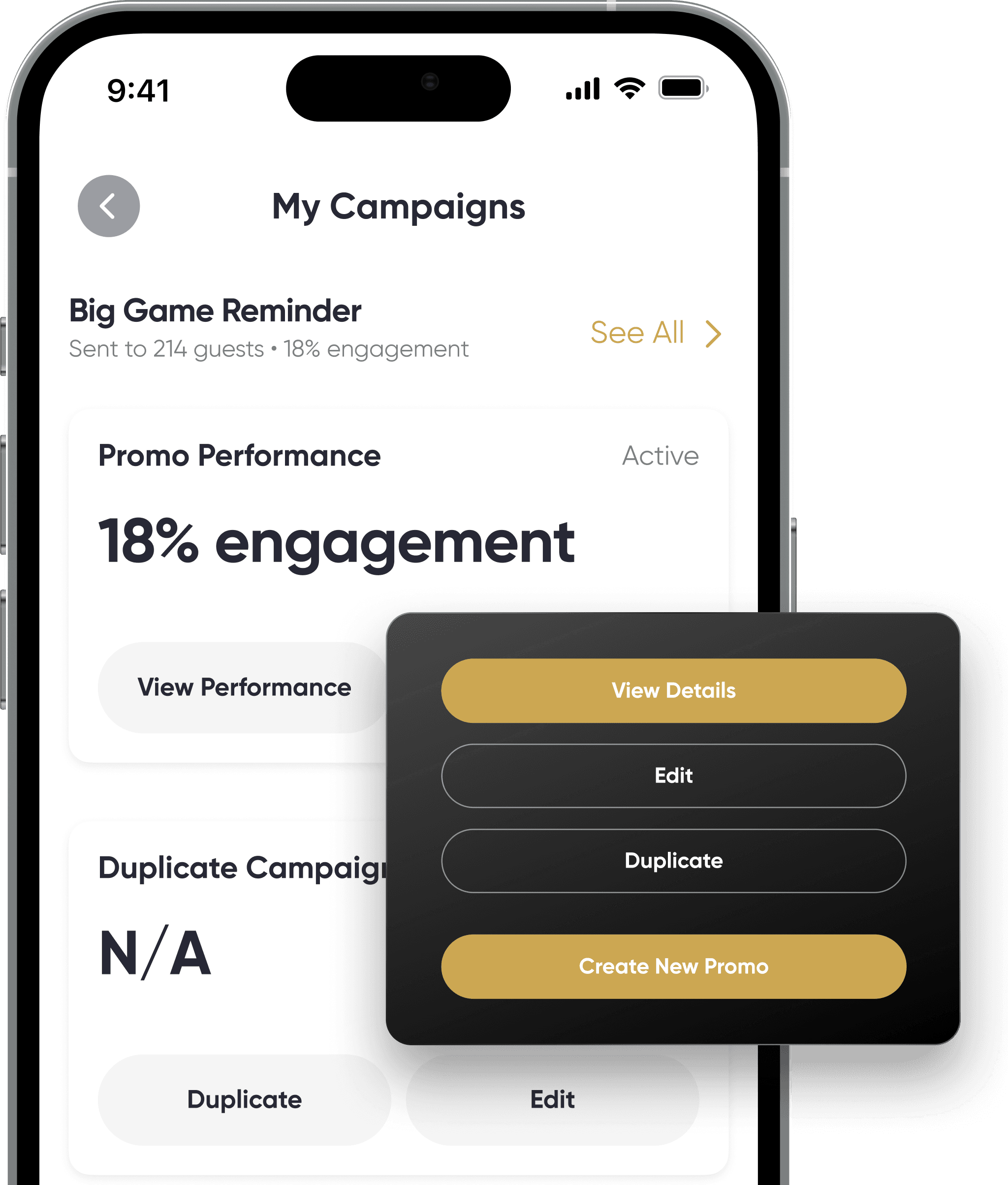 Create campaigns that work in the background. From scheduled promos to automated re-engagement flows, Tap In will handle the timing while you focus on running the bar.
