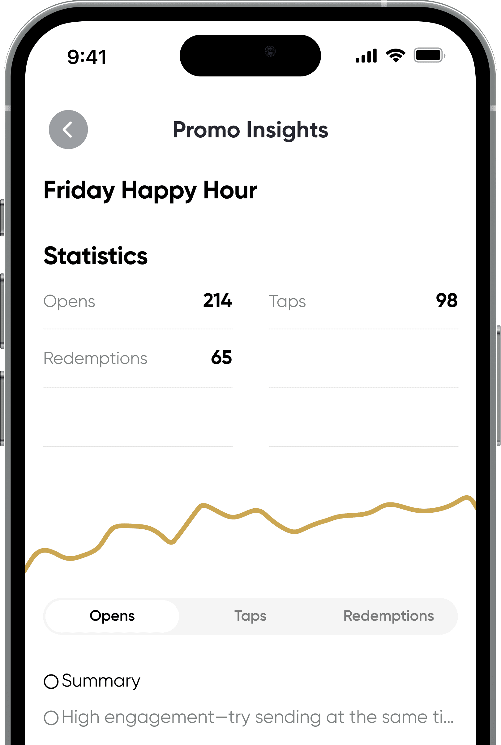 Get the full picture on how your campaigns perform—opens, taps, redemptions, and more. Actionable analytics will help you improve results without the guesswork.