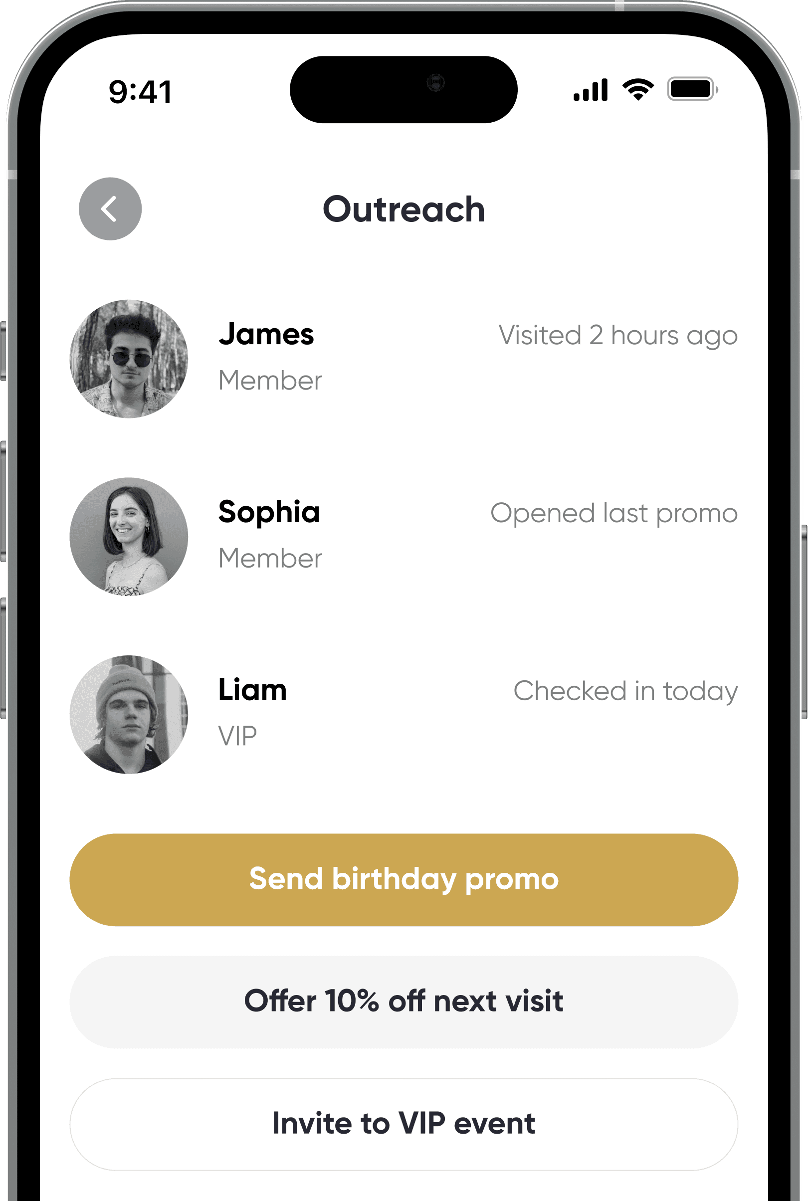 Tailor your messages based on guest behavior, visit history, or preferences. Whether it’s a flash deal, VIP night, or birthday reward—Tap In helps you send the right message at the right time.